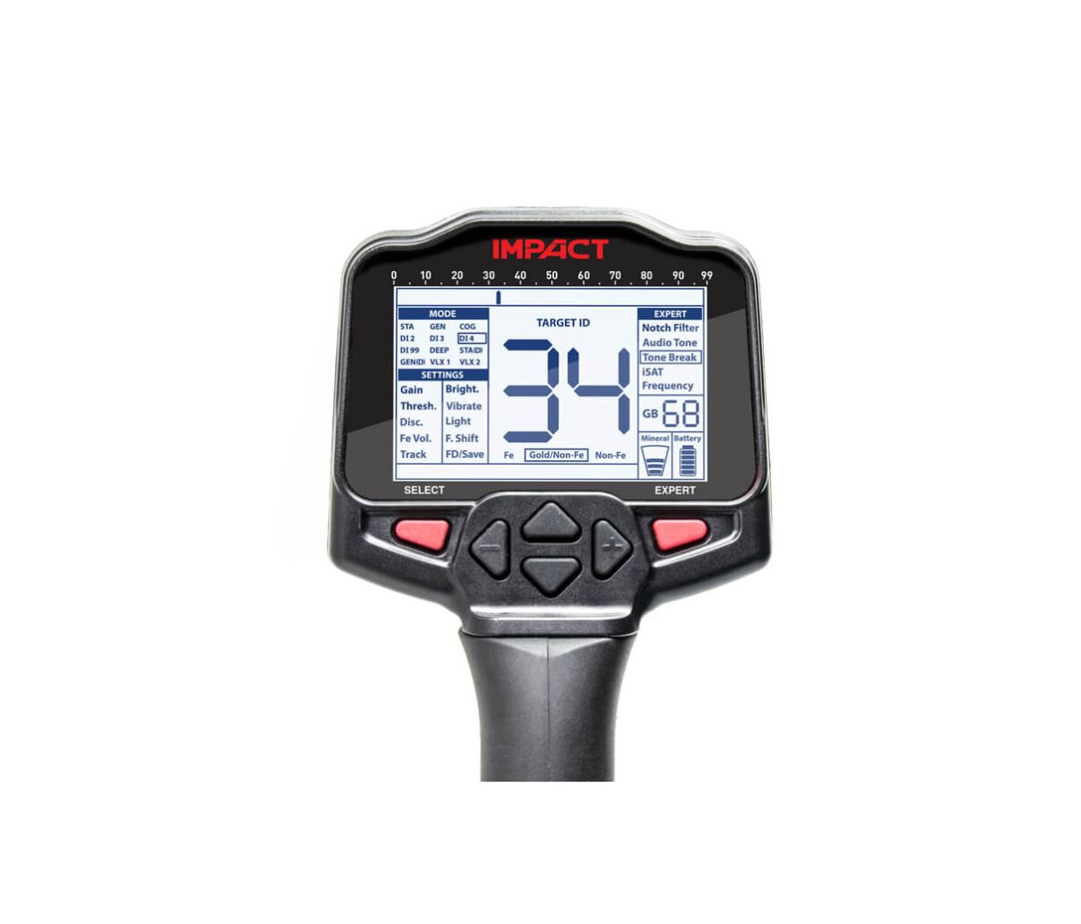 Equipped with three powerful operating frequencies, online firmware updates (via PC USB), and a robust design, the IMPACT offers excellent depth and advanced discrimination capabilities. True to its name, the IMPACT will significantly enhance your detecting success.
